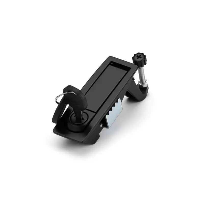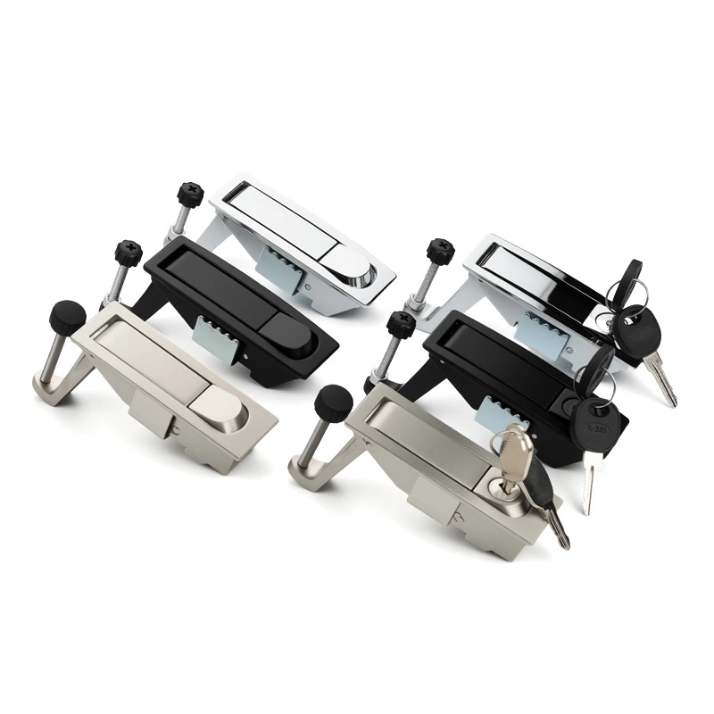Valitse lukkoytiminen tai lukitsematon versio turvallisuusvaatimusten mukaan. Suosittelemme kriittisiin laitteisiin, joilla on korkeat turvallisuusvaatimukset. Tarkista lukon yhteensopivuus kaapin oven paksuuden kanssa. Valitse materiaalit, jotka sopivat ympäristön kosteuteen, korroosiotasoon ja vaadittuun lukkolujuuteen. Alumiiniseosversio sopii normaaleihin ympäristöihin, kun taas ruostumattomasta teräksestä valmistettu versio sopii paremmin vaativiin olosuhteisiin. Alumiiniseospinnat ovat musta ja kromi. Ruostumattomassa teräksessä on harjattu pinta.