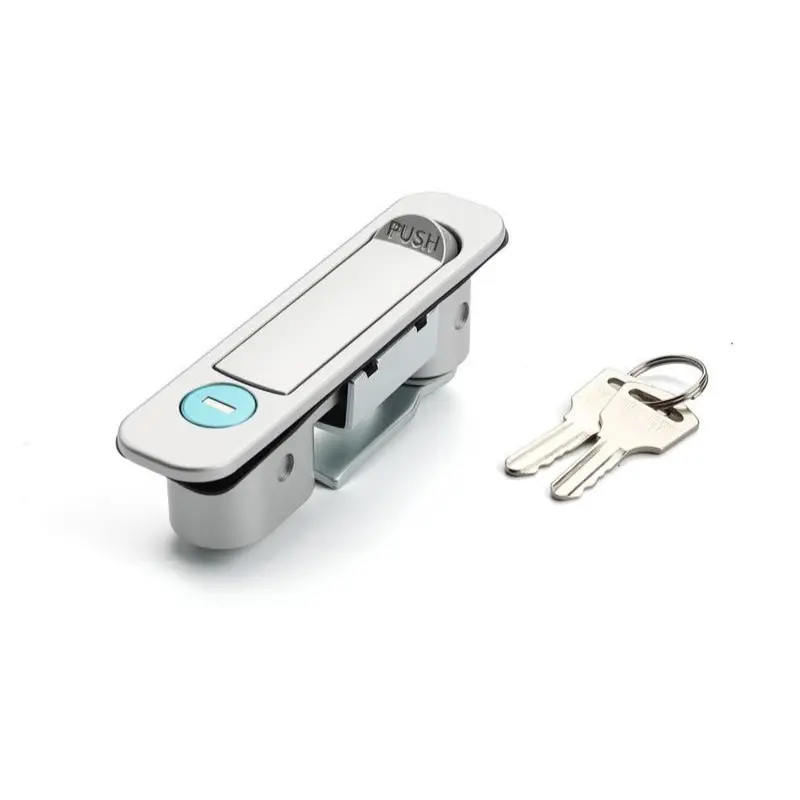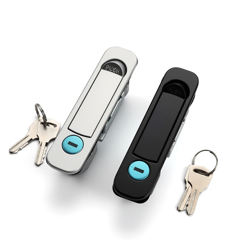 Yitai Lockin teräksiset kaapin oven lukot tekevät sähkökomponenteista turvallisempia. Lukko on asennettu tasolle kaapin oven pinnan kanssa, mikä varmistaa sekä esteettisen viehätyksen että tilankäytön tehokkuuden. Lukon sujuvan ja luotettavan toiminnan takaa kahvaan integroitu jousimekanismi.